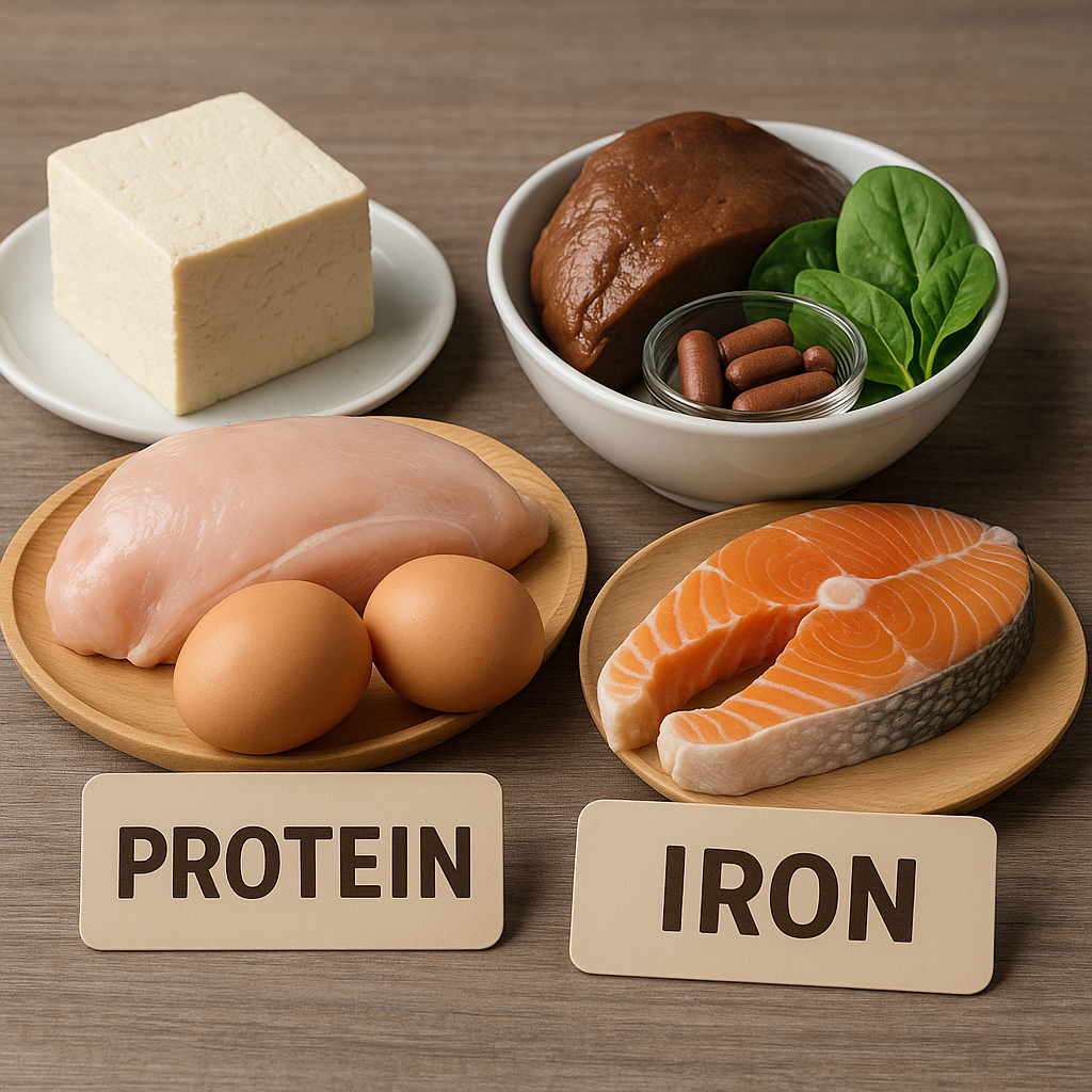 - 단백질: 두부, 닭가슴살, 달걀, 생선